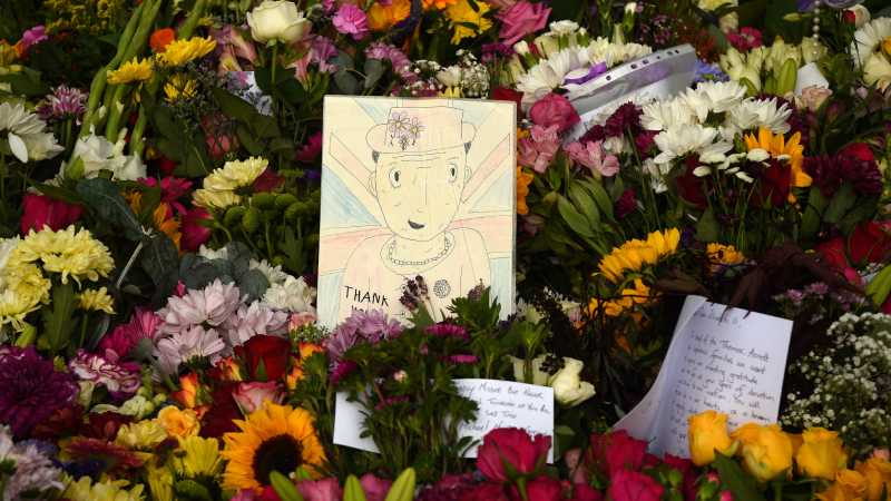 Flores, dibujos, mensajes y otros recuerdos son dejados por personas en diferentes puntos estratégicos de Inglaterra, recondando a la reina Isabel II quien falleció el 8 de septiembre.